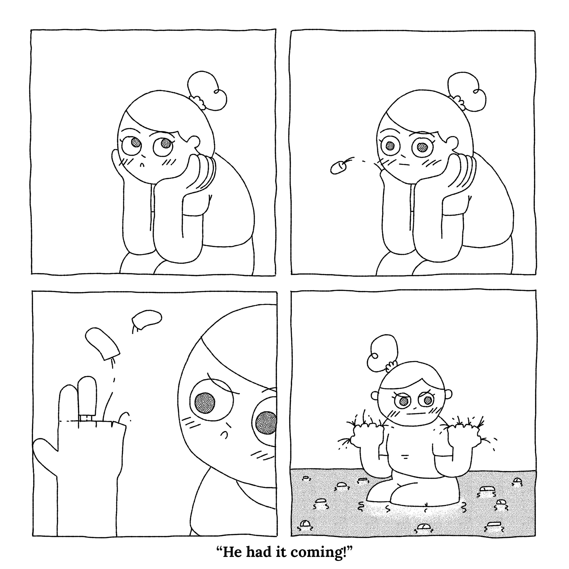 “He had it coming,” they sang in unison. I guess I did too.