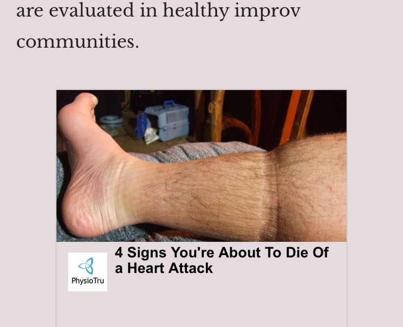 Oi vey. That man’s socks are too tight. Poor guy. There’s nothing healthy about that improv community. And by improv community, I mean leg. He should get his cholesterol checked out. Mine is terrible.
