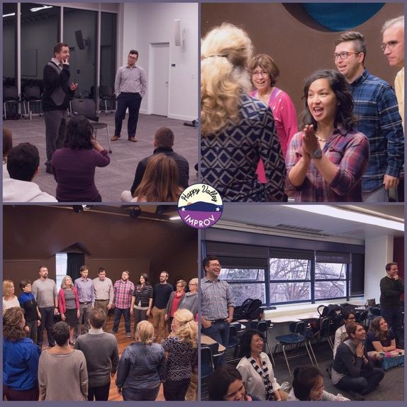 Oh, and I stole the image for this week’s blog from Happy Valley Improv’s website. I always go there when I’m looking for pictures of improv. The four pictures above show me, Andrea, James, and Nate leading improv workshops. Makes me so nostalgic. There’s lots of joy in the four pictures above. More than three things for sure.