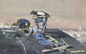We contacted the roofers who replaced our neighbor’s roof. Invited them out to take a look. A contractor showed up and climbed onto the roof.