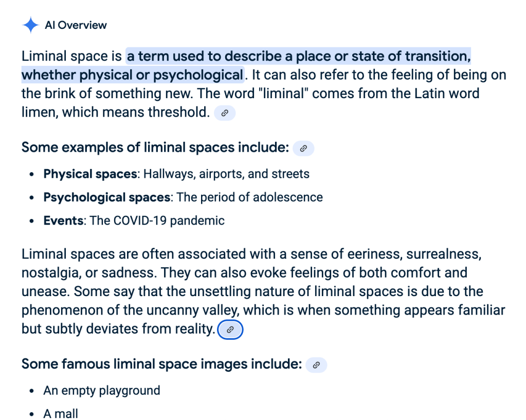 AI, by way Google, provides me with this collection of images of liminal spaces: