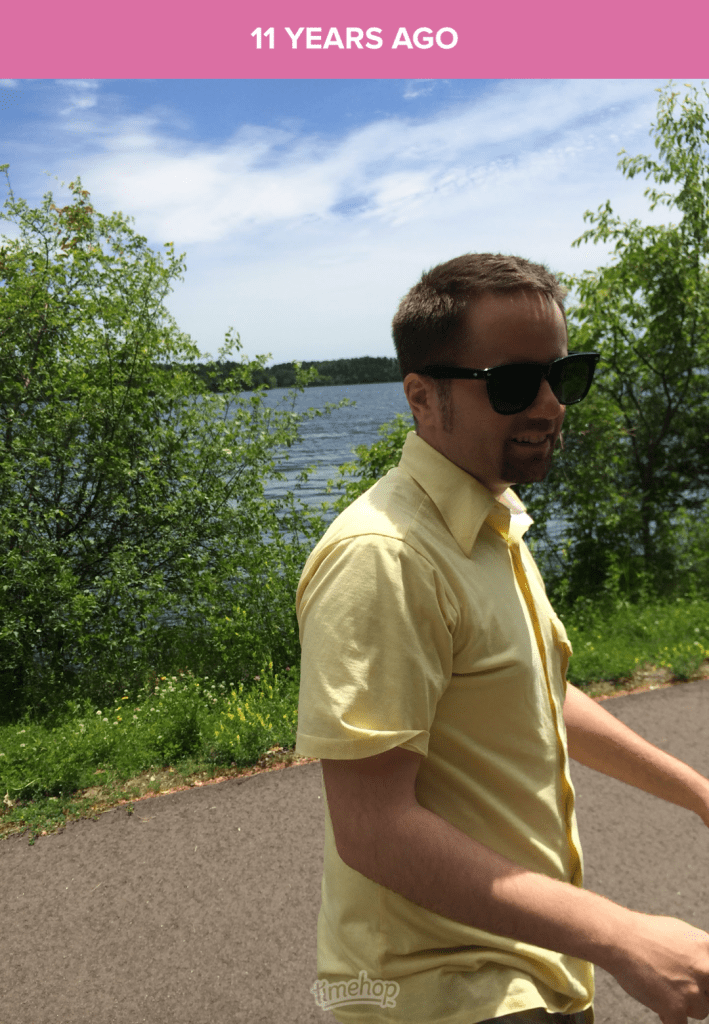 My wife Katie sent me this image a few weeks ago. Old pictures show up on Timehop. Timehop is an app that, as the name suggests, allows a person to hop through time.