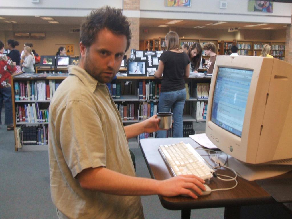 My friend Natalie took this picture in 2009. At the time, she was a high school senior working on a final project in a Dramatic Literature class. I was a high school teacher. We were in the Media Center so students like Natalie could work on their final projects.