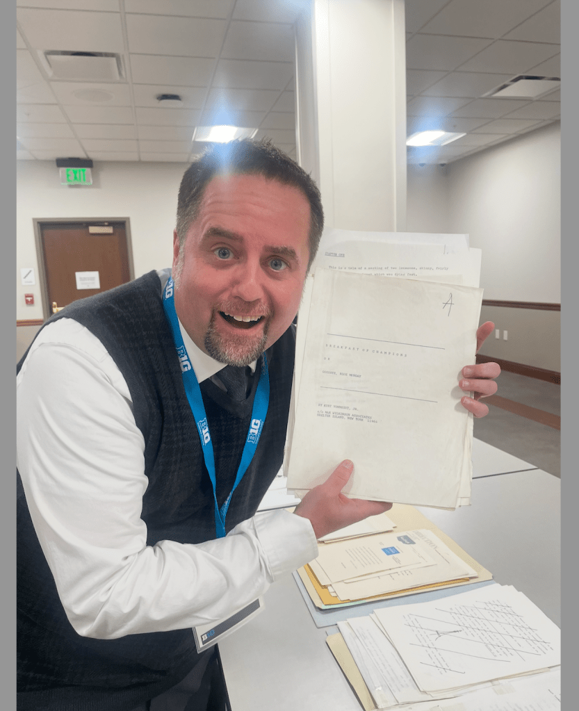 “This is the original manuscript of Kurt Vonnegut’s Breakfast of Champions,” the librarian said.