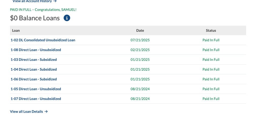 I proudly share this piece of financial information with you all without self-deprecating humor: My student loan debt is finally paid off.